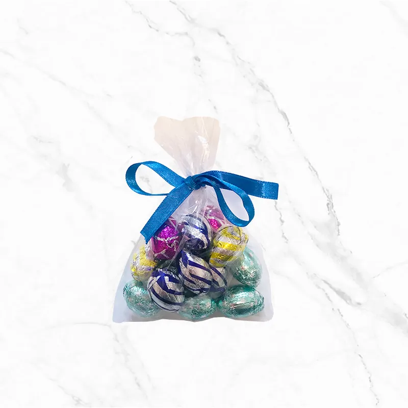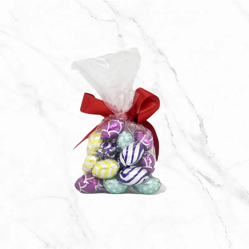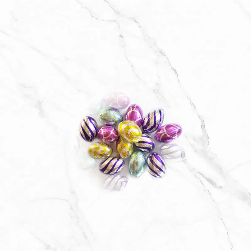Choco Eggs включва 20 броя малки шоколадови яйца, обвити в цветен станиол