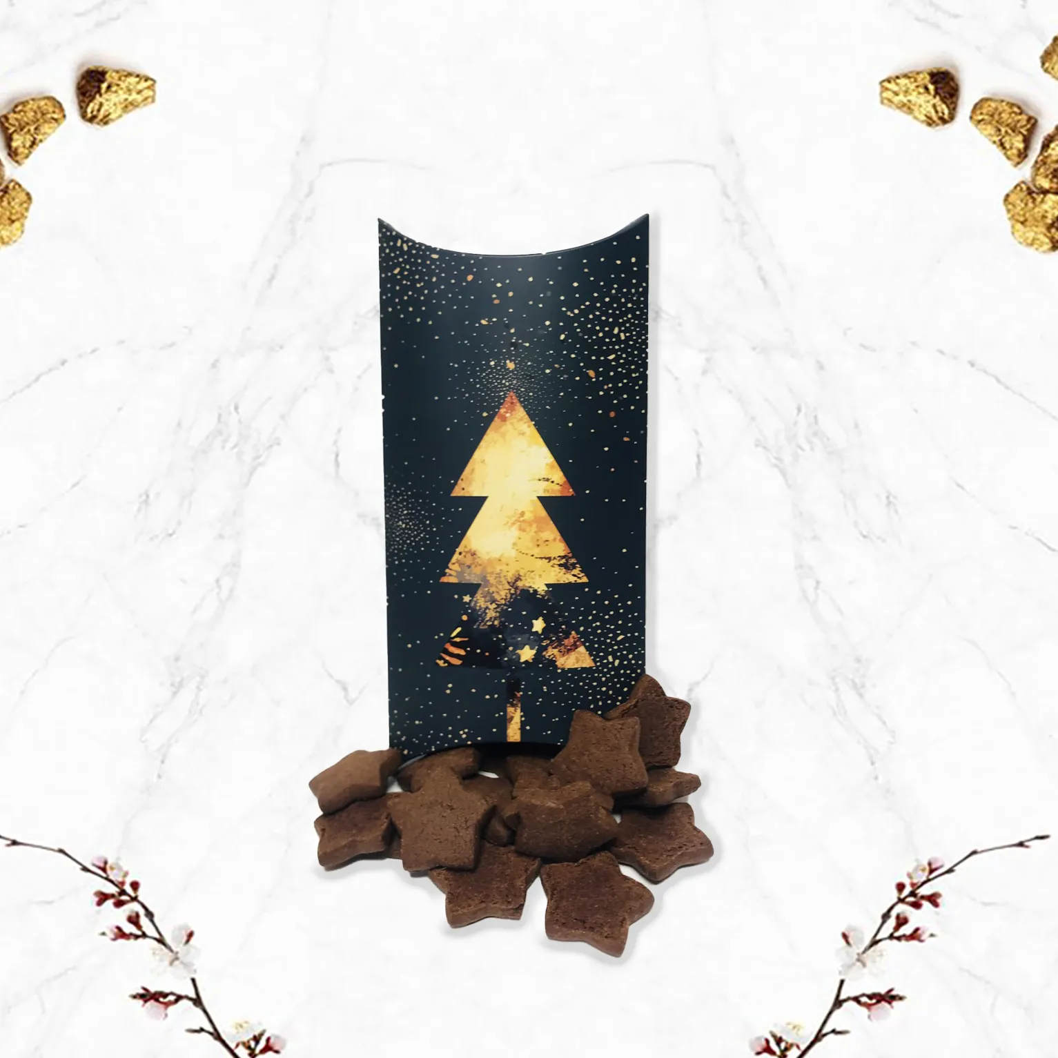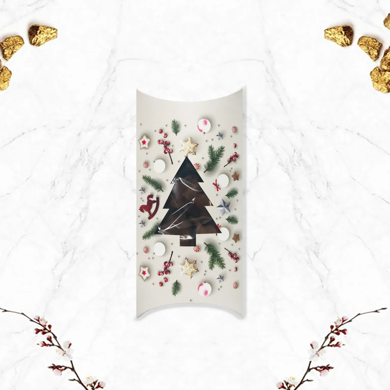 Бонбониерата се персонализира чрез пълноцветен печат, като може да бъде допълнително украсена с изрязано прозорче във форма на елха, звезда или друг празничен символ, за още по-впечатляваща визия.