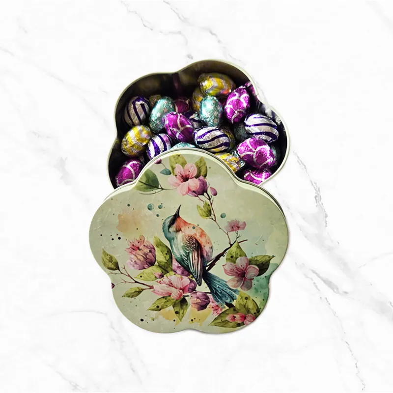 Втората кутия съдържа 40 мини шоколадови яйца, обвити в разноцветен станиол. Тя съчетава висококачествен вкус и визуално атрактивна презентация. Изненадайте вашите клиенти, партньори или служители с този уникален жест на внимание, като добавите персонализирано брандиране в един цвят или чрез гравиране.