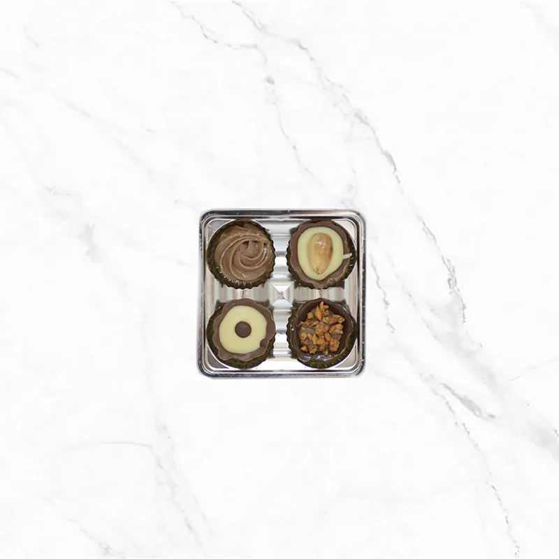 4 ръчно изработени бонбона с вкус по Ваш избор в сребърна или златна подложка